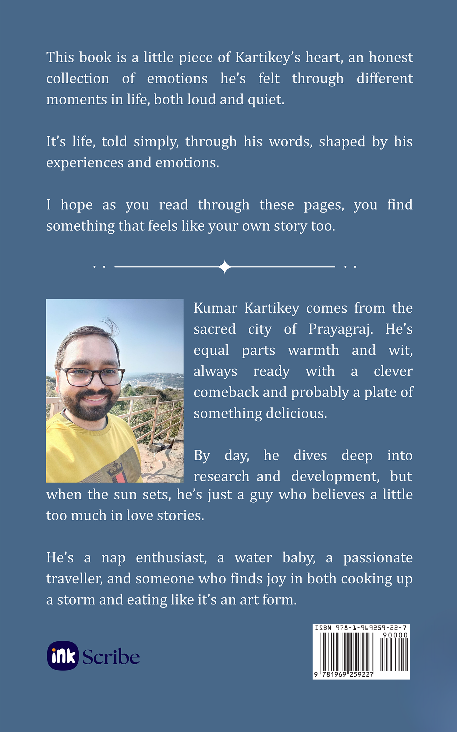 This book is a little piece of Kartikey’s heart, an honest collection of emotions he’s felt through different moments in life, both loud and quiet.