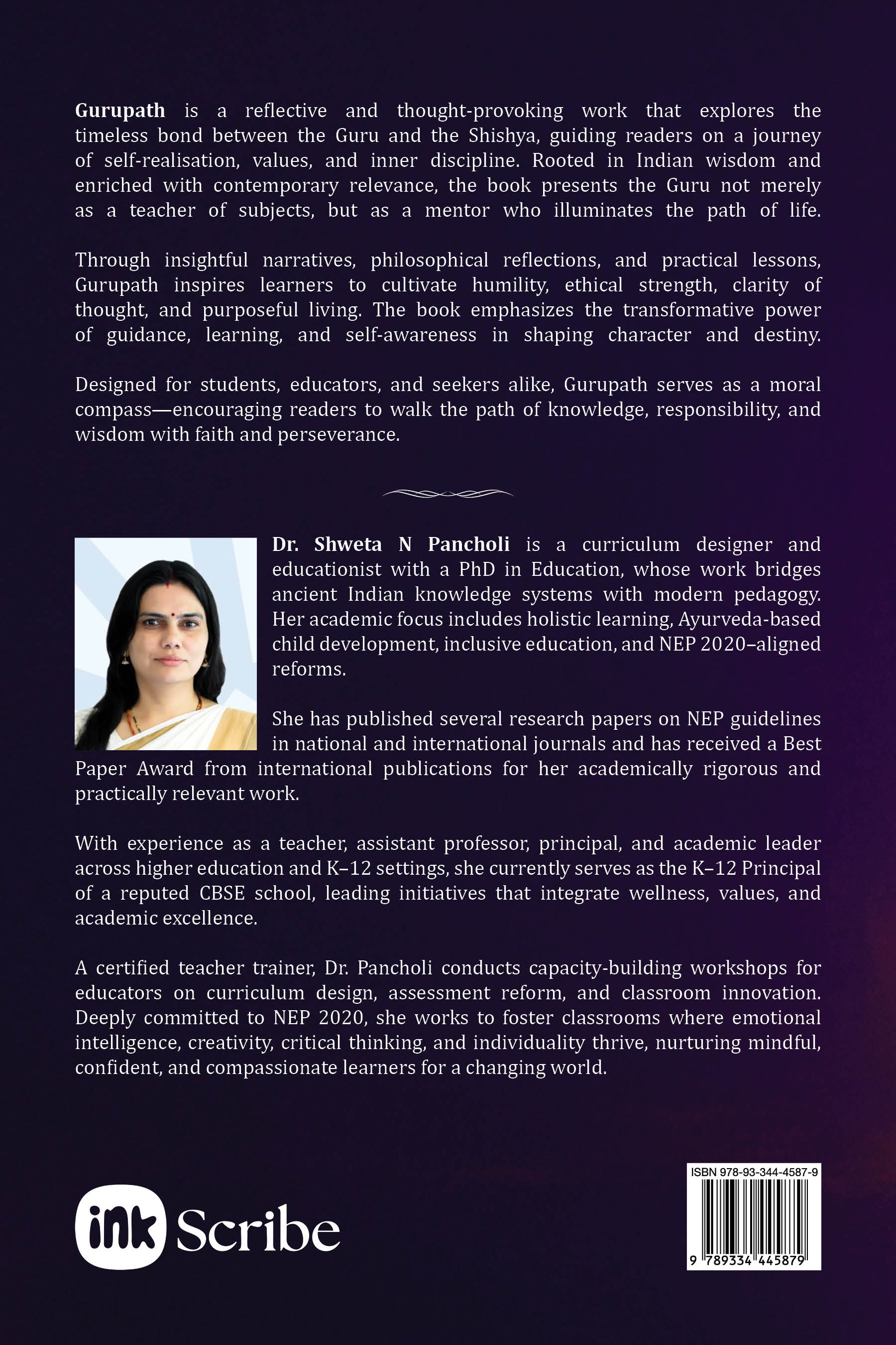 "Gurupath is a reflective and thought-provoking work that explores the timeless bond between the Guru and the Shishya, guiding readers on a journey of self-realisation, values, and inner discipline. Rooted in Indian wisdom and enriched with contemporary relevance, the book presents the Guru not merely as a teacher of subjects, but as a mentor who illuminates the path of life.