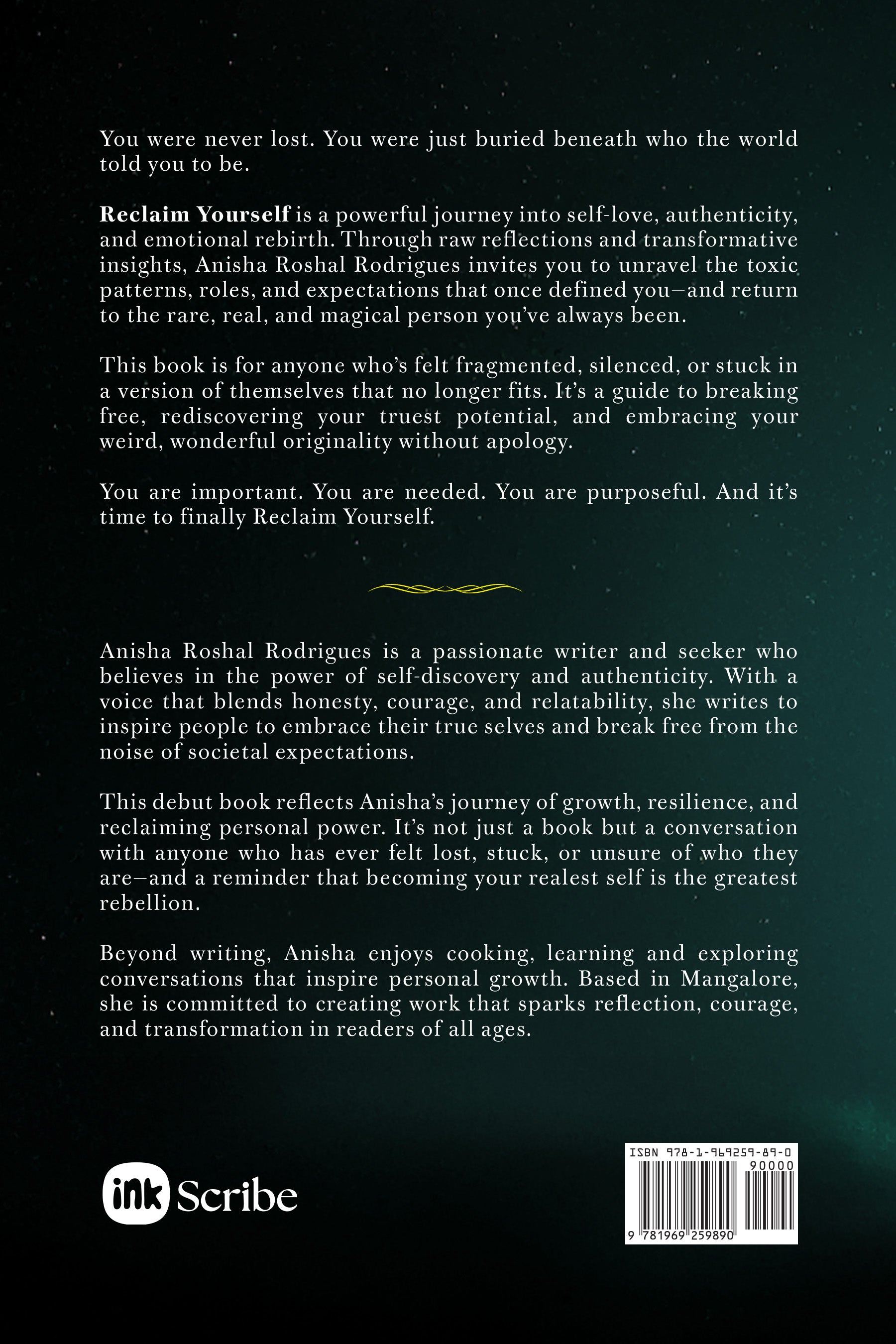 Reclaim Yourself is a powerful journey into self-love, authenticity, and emotional rebirth. Through raw reflections and transformative insights, Anisha Roshal Rodrigues invites you to unravel the toxic patterns, roles, and expectations that once defined you—and return to the rare, real, and magical person you’ve always been.
