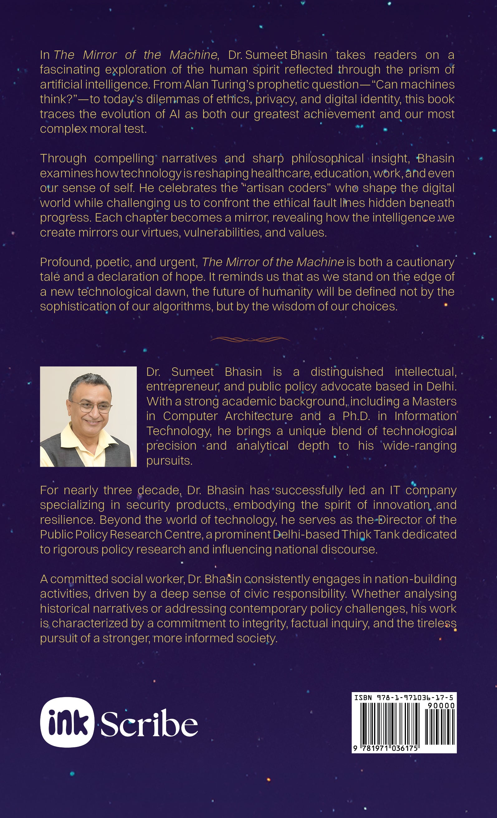 In The Mirror of the Machine, Dr. Sumeet Bhasin takes readers on a fascinating exploration of the human spirit reflected through the prism of artificial intelligence. From Alan Turing’s prophetic question—“Can machines think?”—to today’s dilemmas of ethics, privacy, and digital identity, this book traces the evolution of AI as both our greatest achievement and our most complex moral test.