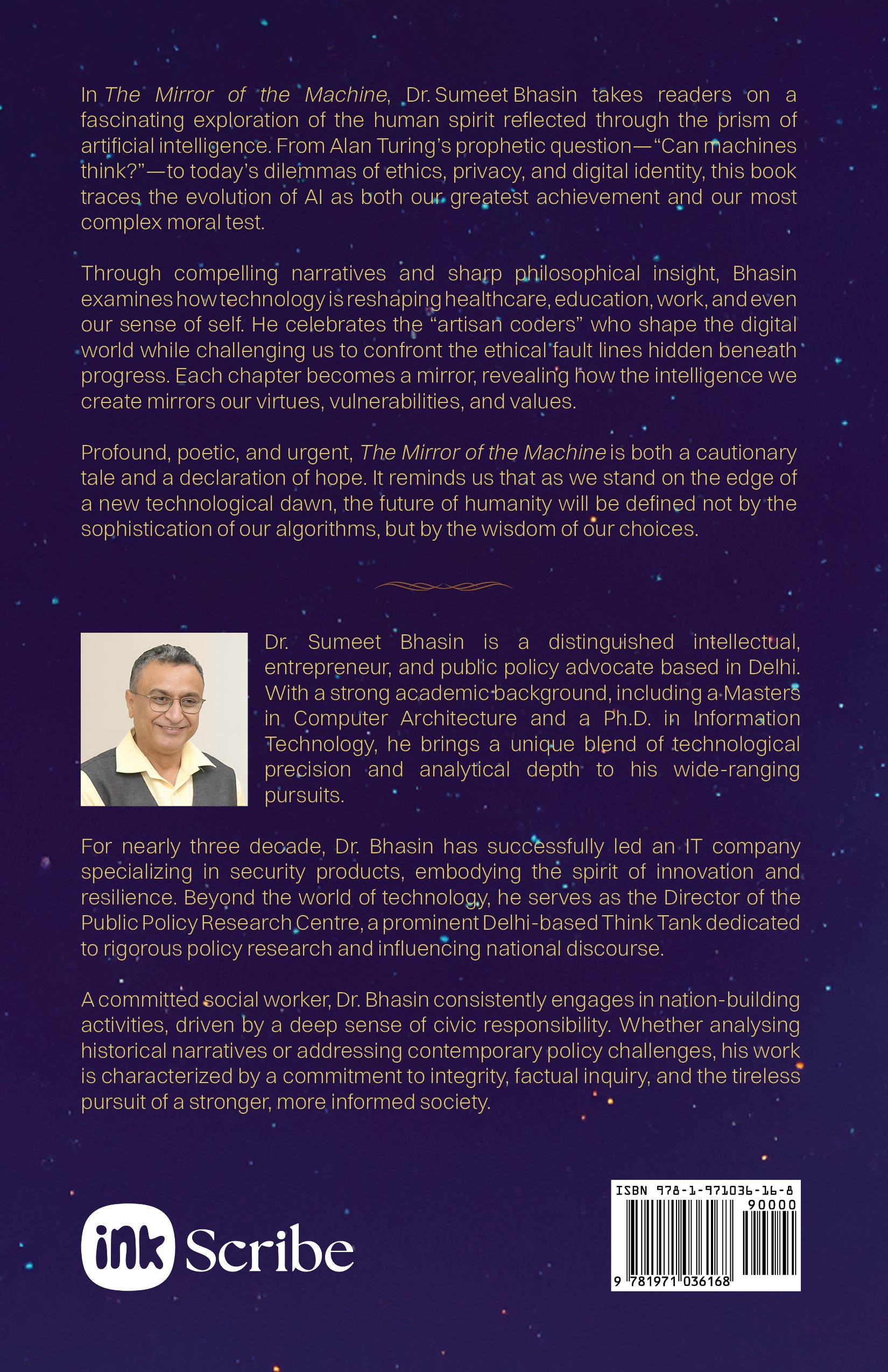 In The Mirror of the Machine, Dr. Sumeet Bhasin takes readers on a fascinating exploration of the human spirit reflected through the prism of artificial intelligence. From Alan Turing’s prophetic question—“Can machines think?”—to today’s dilemmas of ethics, privacy, and digital identity, this book traces the evolution of AI as both our greatest achievement and our most complex moral test.