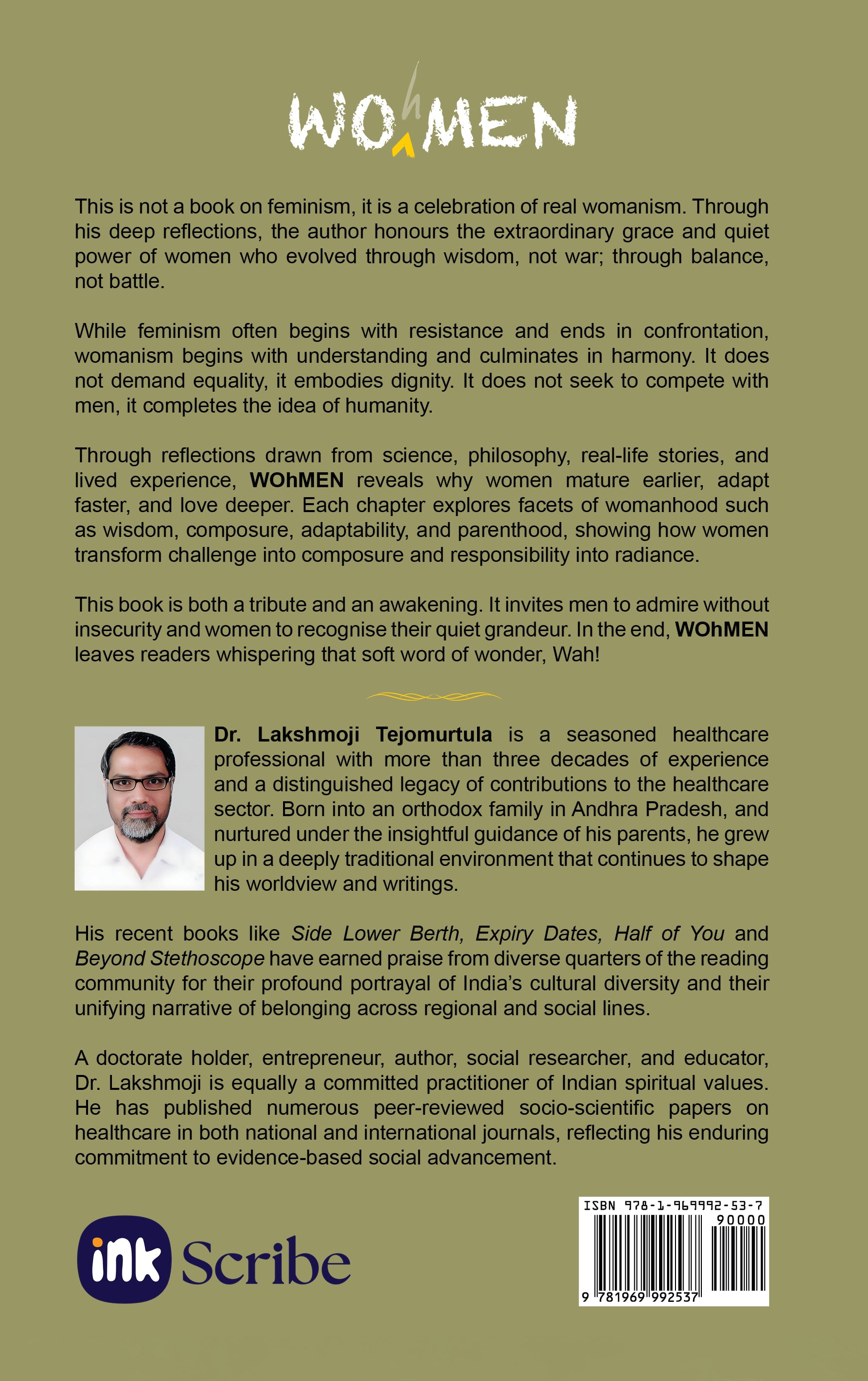 Through reflections drawn from science, philosophy, real-life stories, and lived experience, WOhMEN reveals why women mature earlier, adapt faster, and love deeper. Each chapter explores facets of womanhood such as wisdom, composure, adaptability, and parenthood, showing how women transform challenge into composure and responsibility into radiance.